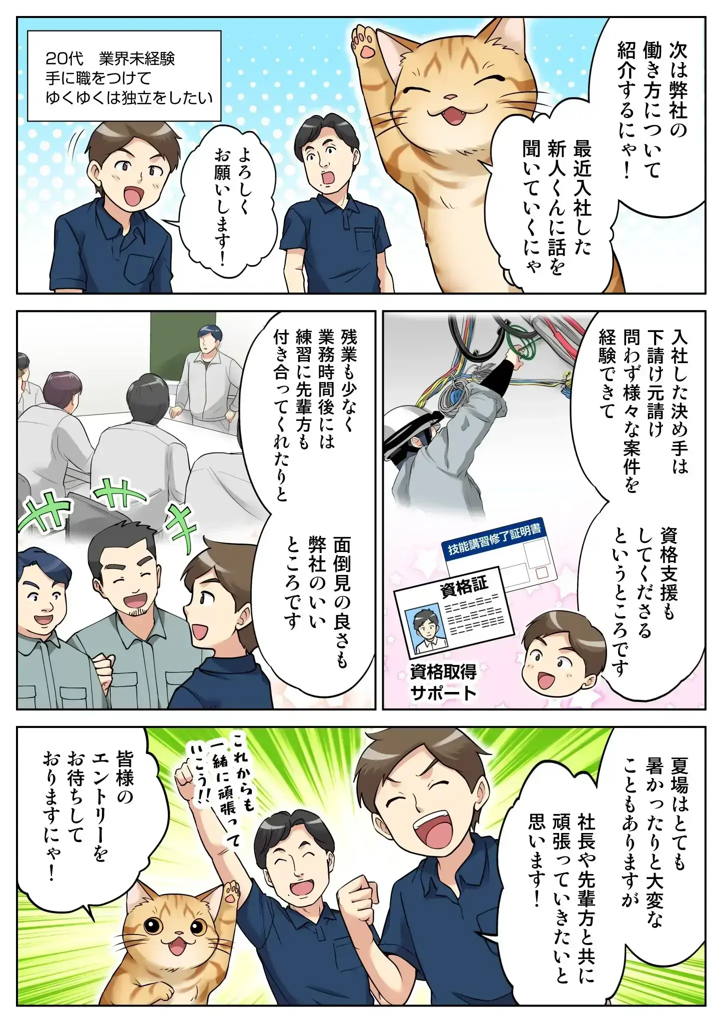 奥本電機の働き方についてまとめました。未経験者歓迎。手厚いサポート体制を整えてお待ちしております。